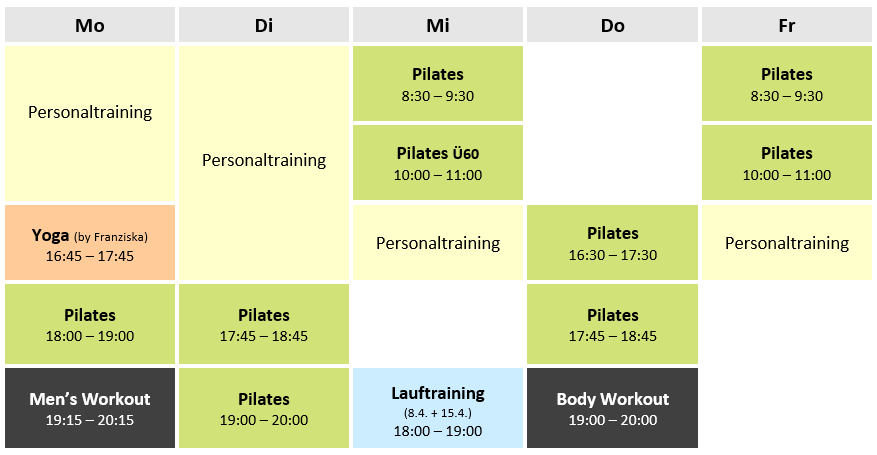 Die Gruppenkurse sind nur im Block buchbar (EUR 15/Einheit) – Falls Plätze frei sind, kannst du auch gerne quer einsteigen.
